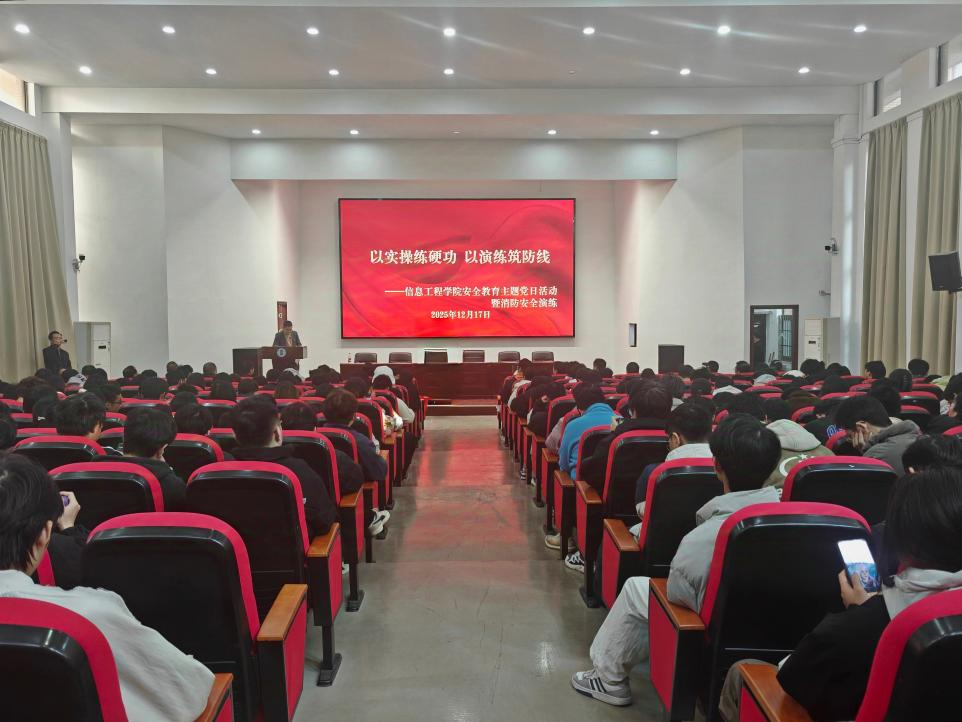 为深入贯彻落实平安校园建设工作要求,强化师生安全防范意识与应急处置能力,12月17日,信息工程学院以“以实操练硬功·以演练筑防线”为主题,成功开展安全教育主题党日活动暨消防安全演练。景德镇陶瓷大学党委常委、副校长冯浩、保卫处有关负责人、学院党政领导班子、全体教师、学生党员代表共同参与,以理论学习+实操演练的形式,为青春成长筑牢安全屏障。