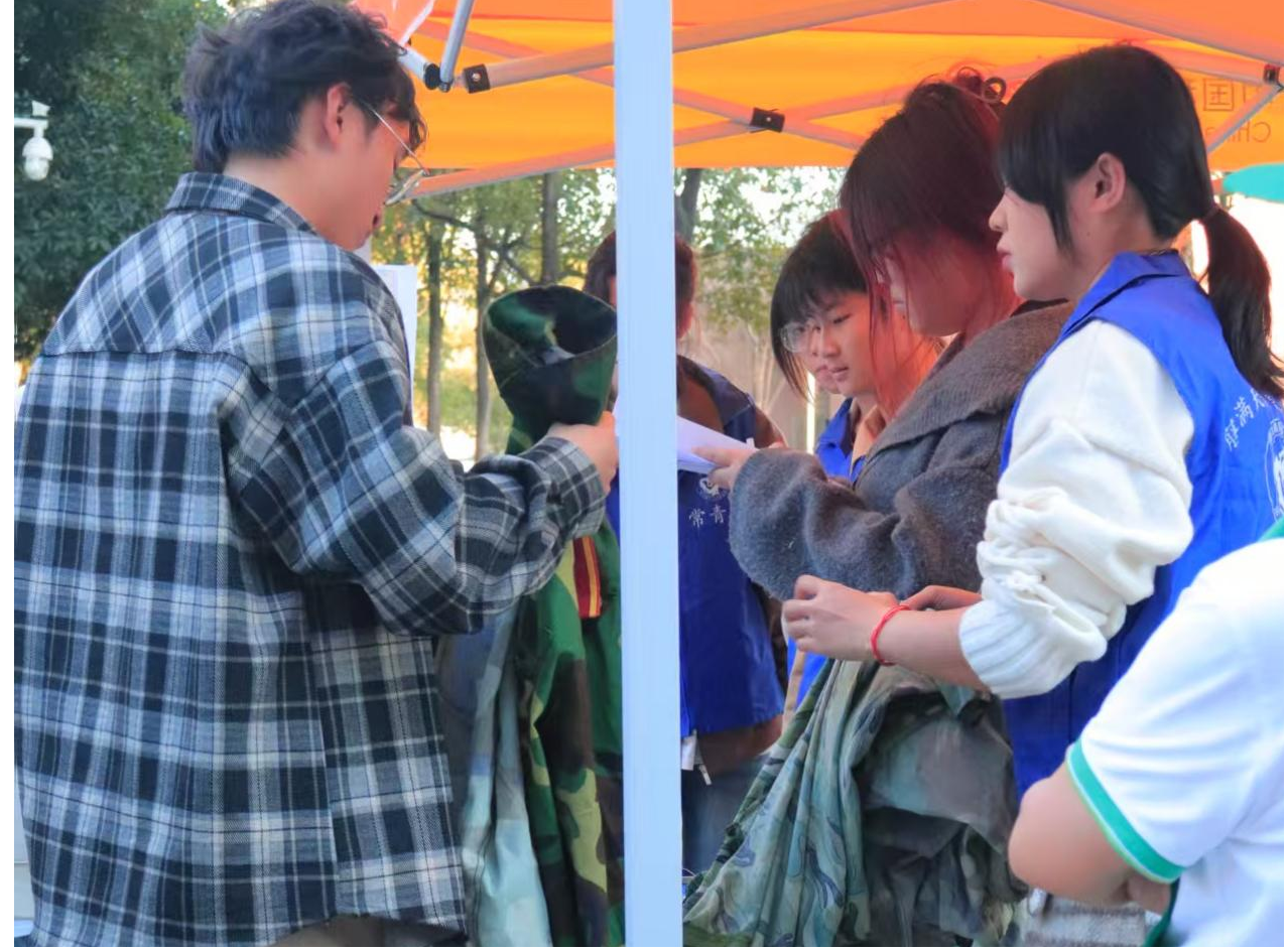 2025年10月24日,常青藤志愿者协会在学校二食堂开展“旧衣换新·暖意循环”军训服与旧衣回收公益活动,吸引近千名师生参与,累计回收各类衣物1200余件,其中军训服占比超60%,为资源循环利用与爱心公益搭建起校园桥梁。除此之外,志愿者们还走进宿舍楼,为有意愿捐赠的同学提供便利,让饱含青春记忆的军训服传递善意。整个活动中,志愿者们不仅践行了环保节约的理念,更以实际行动彰显了奉献与爱心的意义。