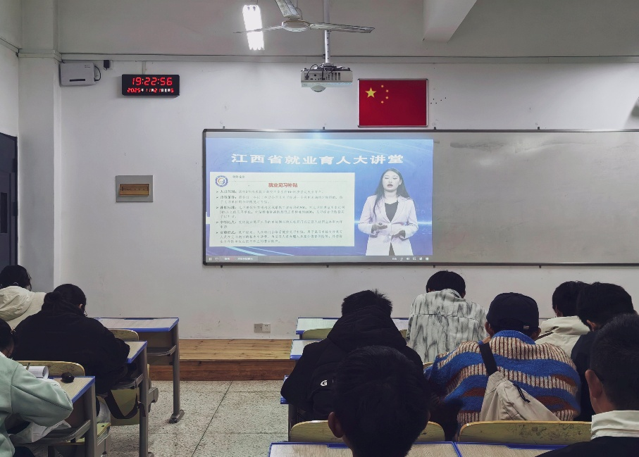 本学年第三期江西省就业育人大讲堂于11月21日19:00开讲,本期特邀就业指导专家徐颖老师围绕《从职业指导视角解读就业政策》作专题授课,我院共有八十余名同学在尚学楼119教室集体观看。