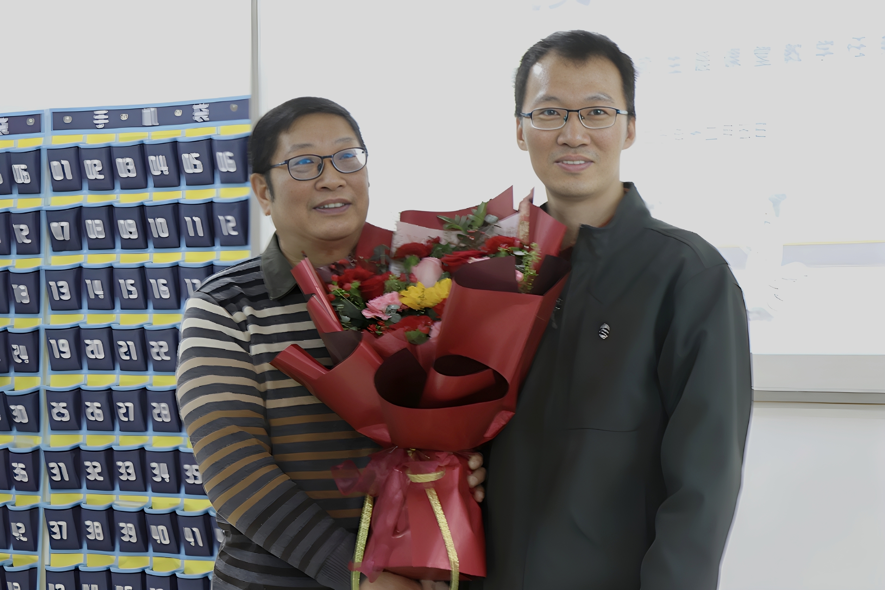 2025年12月5日上午,在景德镇陶瓷大学尚学楼212教室,一场普通的《C语言程序设计》课程却显得极不寻常,这堂课是我校年近六旬的二级教授章义来杏坛四十载的最后一课。信息工程学院为章老师举办了一场朴实而温馨的欢送仪式。2025级计科专业1、2班的学生们、1998级校友赖俊祚,学院领导班子成员、教师代表和章义来劳模创新工作室的成员都齐聚教室,共同见证这一充满温情的时刻。