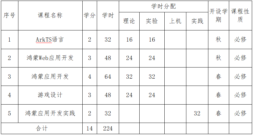 3、掌握鸿蒙系统应用开发的全流程,具备鸿蒙系统的程序设计、软件设计、游戏设计等方面的专业能力,具备与鸿蒙系统开发相适应的工程实践能力和创意创新能力。